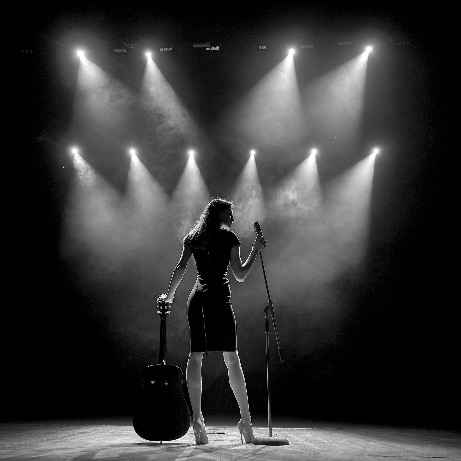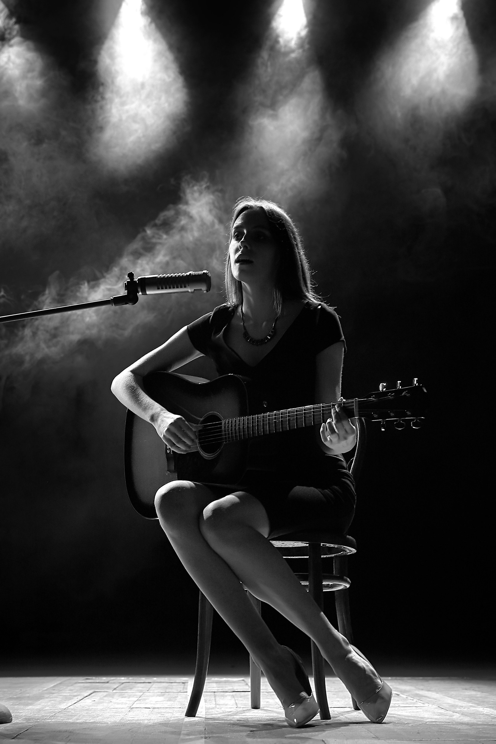 Художественная съемка для талантливой и красивой девушки с гитарой на сцене в Ярославле!