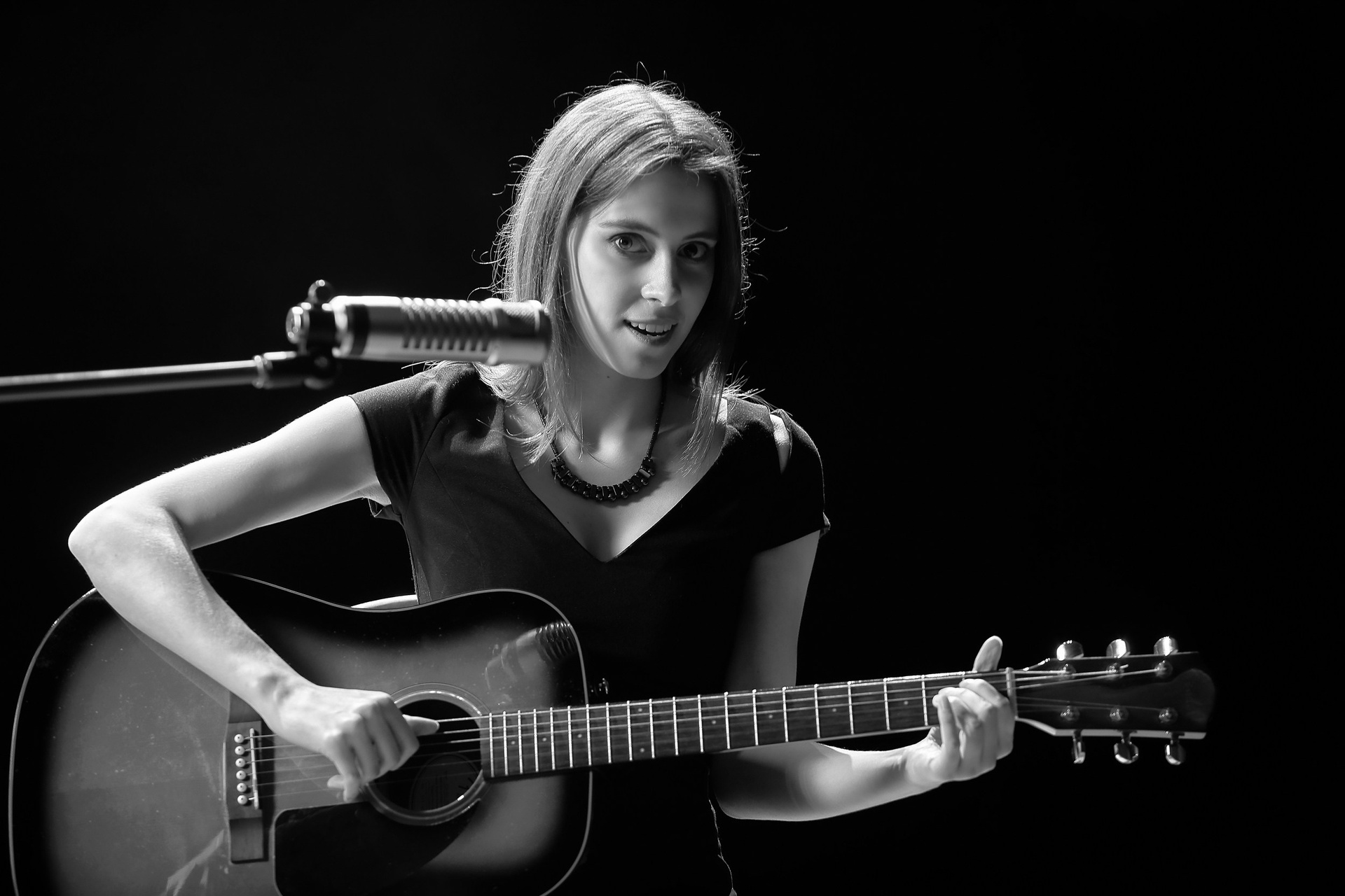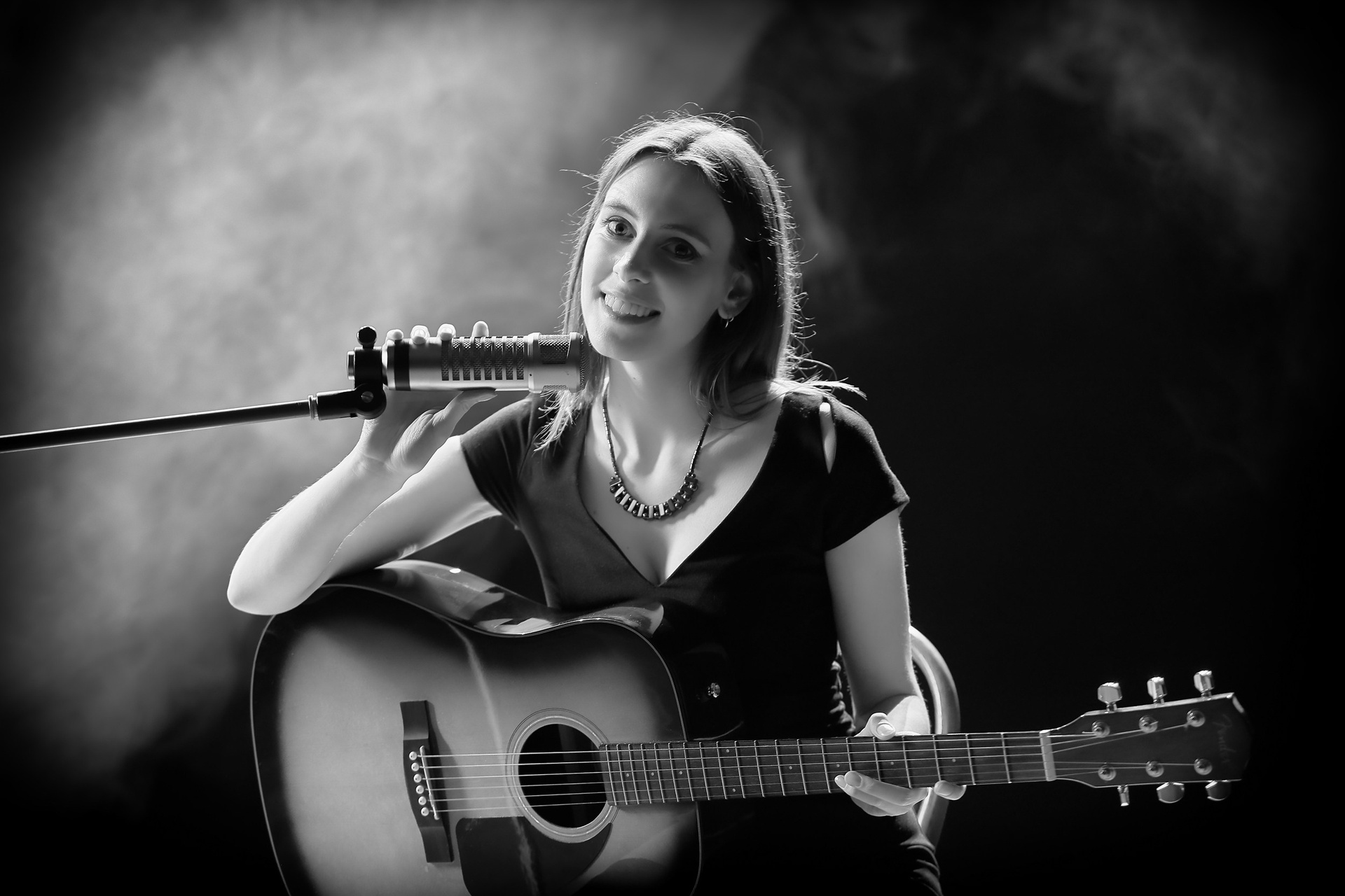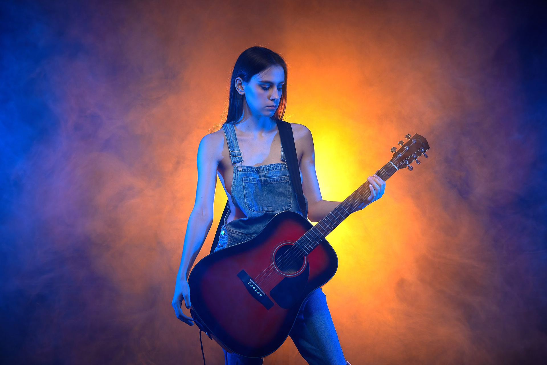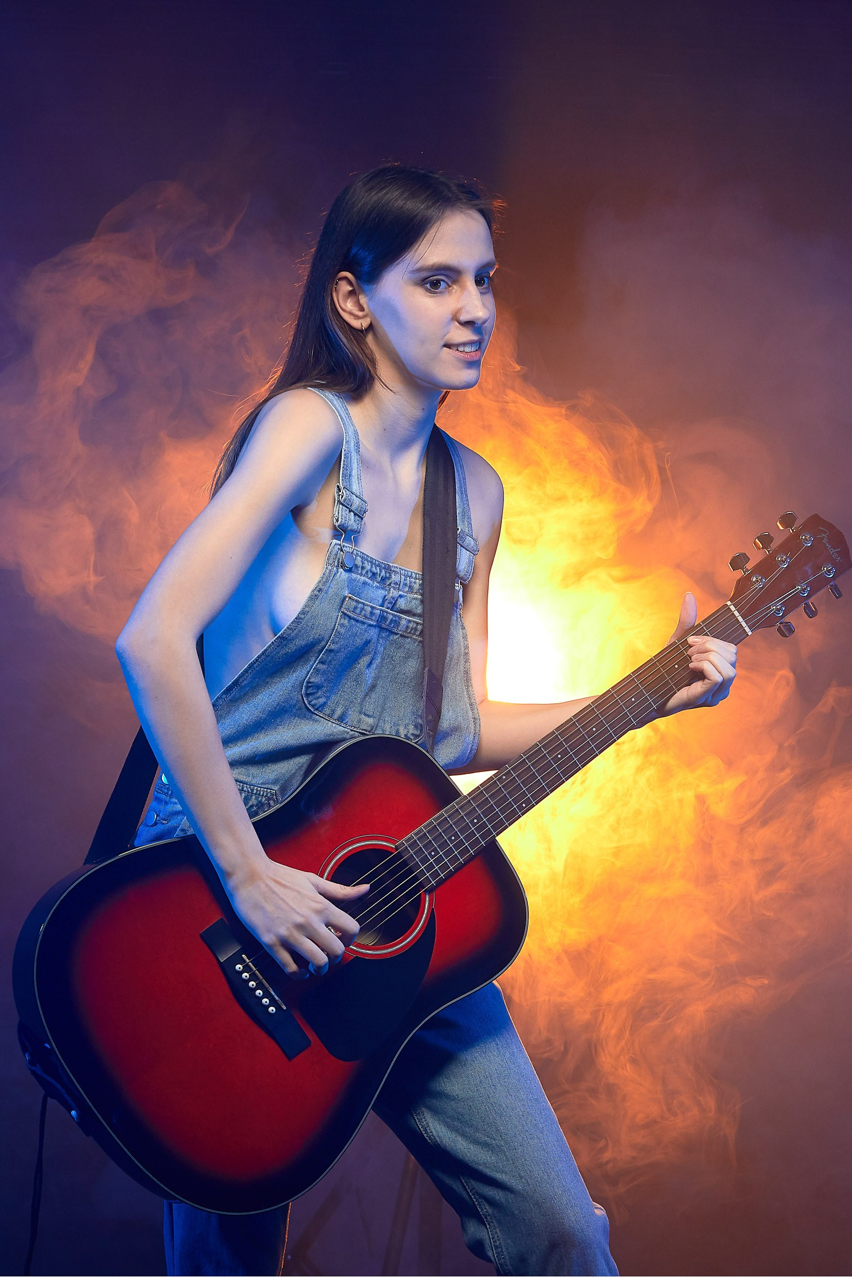 Модель: Лиза, девушка с гитарой, вокалистка, музыкант, обаятельная и привлекательная с добрыми глазами и очаровательной улыбкой.